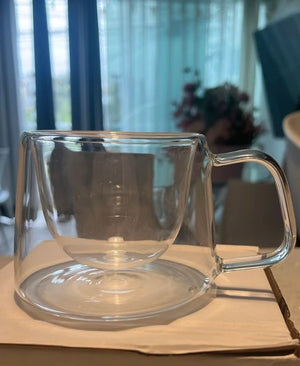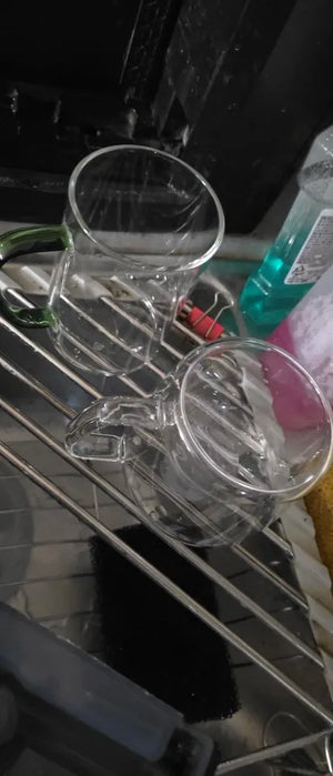 De dubbelwandige glazen mok biedt een veilige en stijlvolle manier om van je favoriete warme dranken te genieten, zonder zorgen.