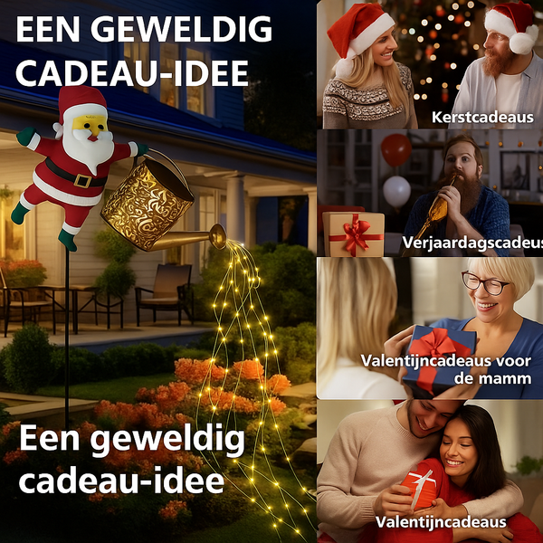 ✔️ Kerstig Santa-design – Uniek gietertje met kerstmotief voor gezellige buitendecoratie.