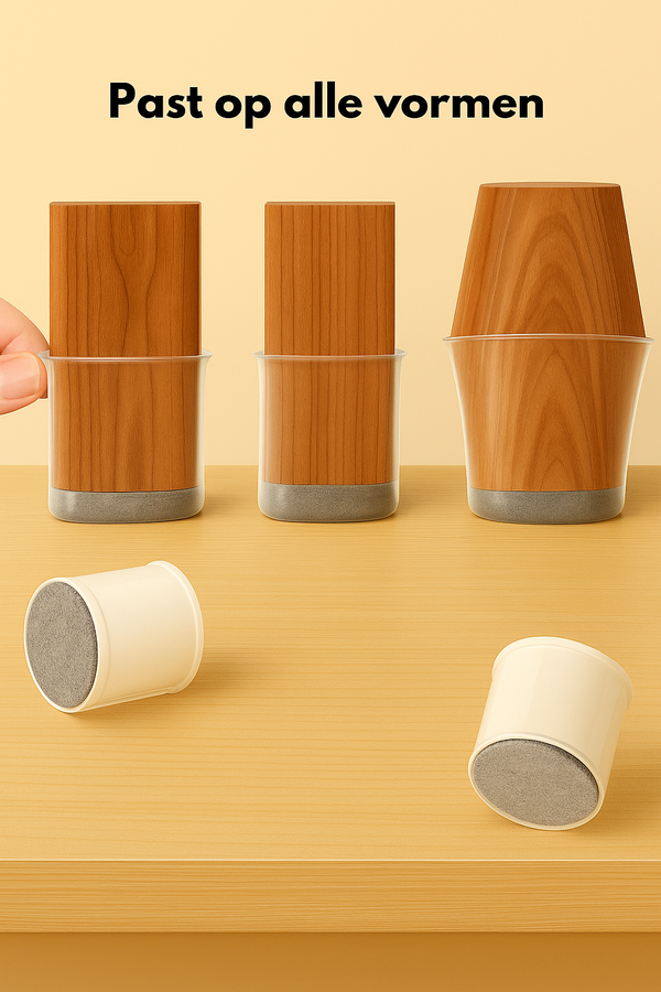 Met GlideGuard™ is dat verleden tijd. Deze slimme stoelpootbeschermers zorgen ervoor dat je stoelen soepel en geruisloos over de vloer glijden – zonder sporen achter te laten. De flexibele siliconen pasvorm sluit perfect aan om elke stoel, terwijl de zachte vilten onderlaag jouw vloer beschermt tegen krassen en slijtage. Geen gedoe met lijm of gereedschap – schuif ze er eenvoudig overheen en geniet direct van stilte, bescherming en comfort bij elke beweging.