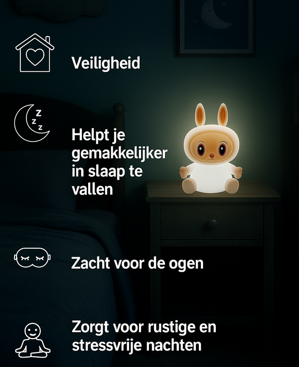 Slaap zacht met LabuLight™ – het nachtlampje dat rust, veiligheid en warmte brengt in elke kamer.