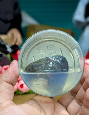 Ja, elke schelp is echt en professioneel geconserveerd zodat de parel veilig blijft. Opengesneden kan veilig met een klein hulpmiddel worden gedaan; wees voorzichtig bij kinderen.