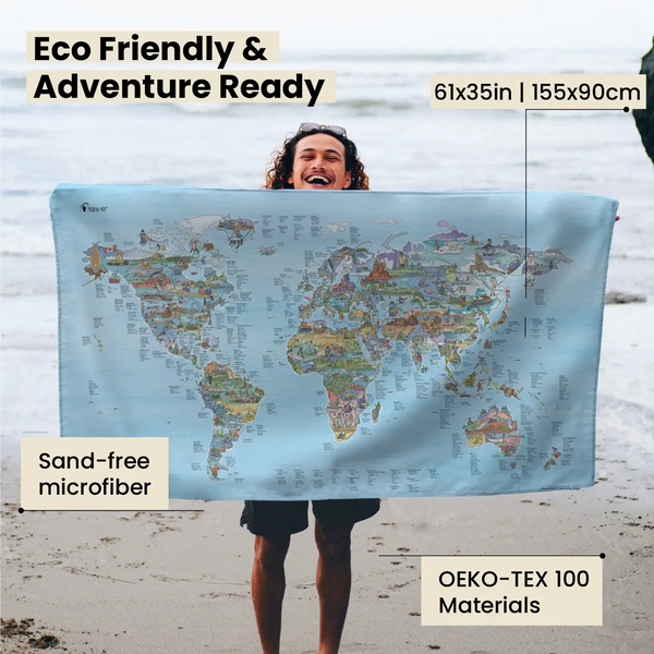 De lichtgewicht strandhanddoek-variant weegt weinig en past makkelijk in je visrugzak, ideaal om op de boot te gebruiken zonder vochtproblemen.