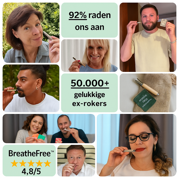 BreatheFree™ helpt je natuurlijk stoppen met roken door aromatherapie en een realistisch rookgevoel – zonder nicotine, rook of schadelijke stoffen. Verminder je drang, vind rust en zet vandaag de eerste stap naar een gezonder, rookvrij leven.