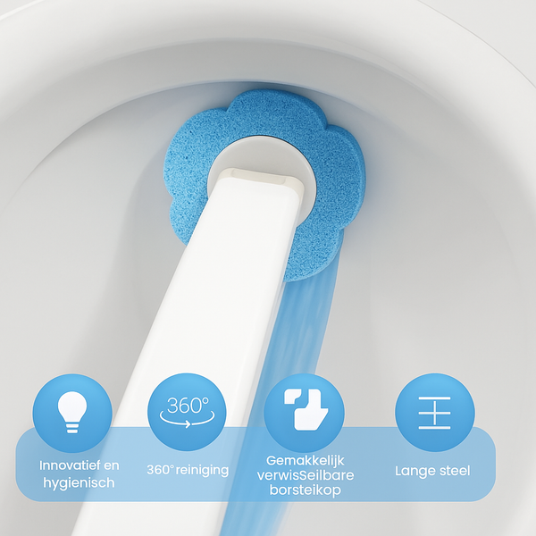 CleanBloom™ vervangt smerige borstels: automatische dispenser, voorgevulde koppen en snel resultaat verzekeren dagelijkse frisheid zonder gedoe.