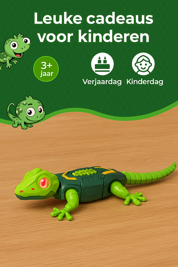 GeckGo™ klimt op muren, ramen en zelfs plafonds dankzij slimme vacuümtechnologie. Met realistische bewegingen, lichtgevende LED-ogen en een snelle vloerstand zorgt hij voor non-stop spanning. Makkelijk te bedienen, oplaadbaar en een gegarandeerde hit voor kinderen die dol zijn op actie, verrassing en gekke stunts.