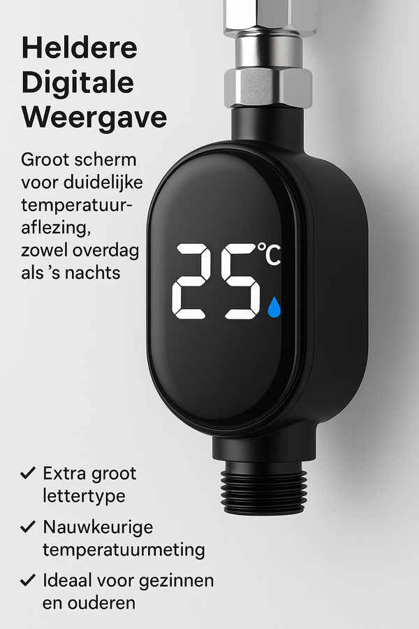 Meet de temperatuur tot op de graad nauwkeurig — geen verrassend koud of te heet water meer.